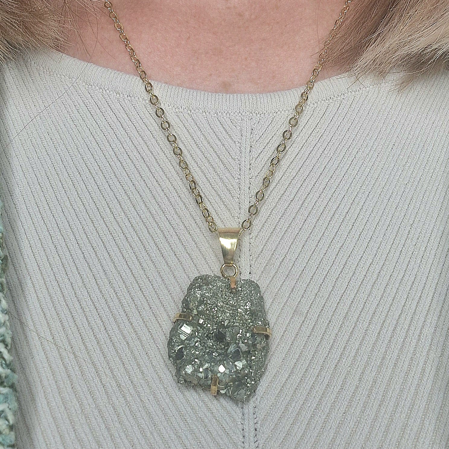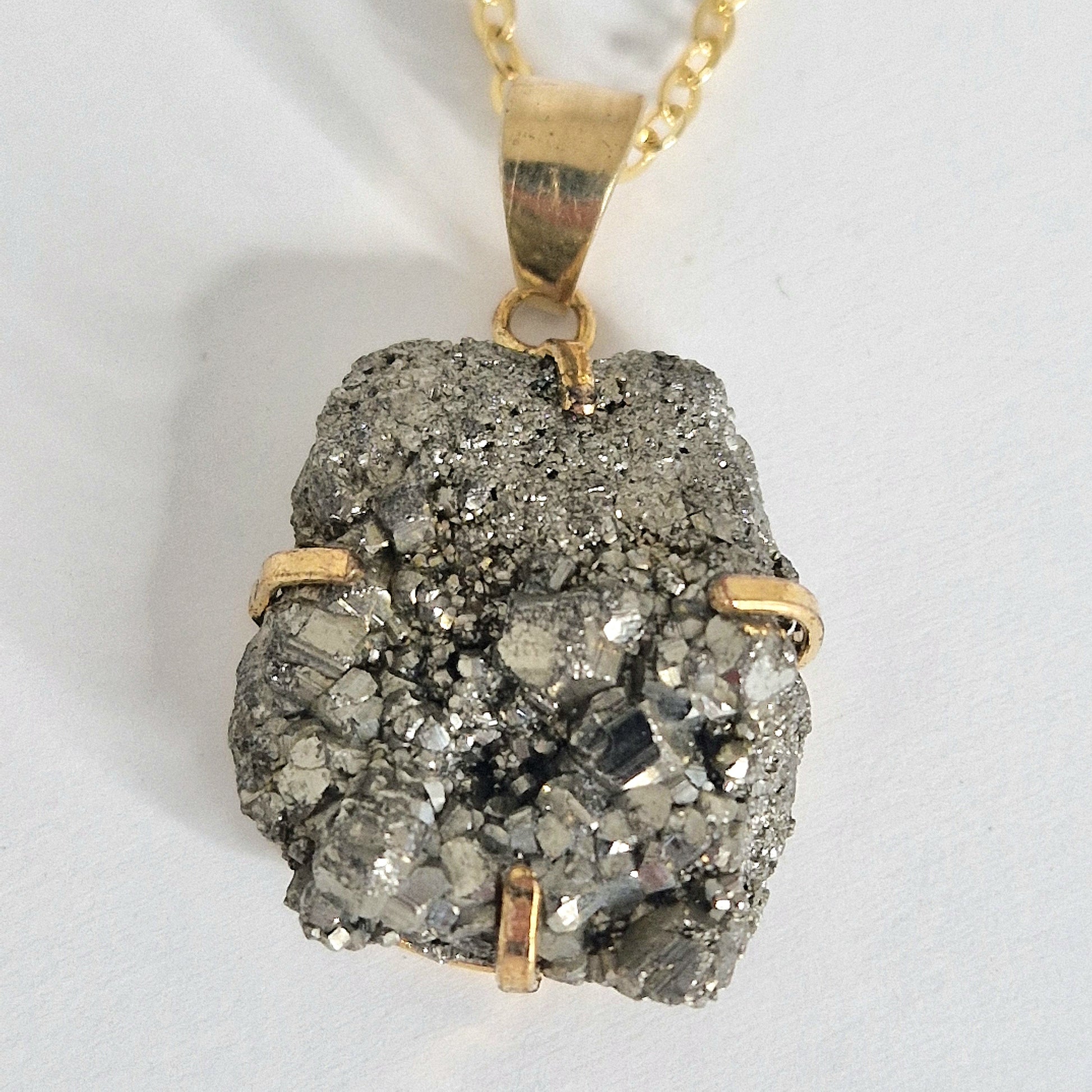 Lassen Sie sich vom Pyrit-Anhänger mit Kette – Gold täglich an Ihre Stärke, Ihren Schutz und Ihren Reichtum erinnern – ein kraftvolles und stilvolles Schmuckstück, das Sie nah am Herzen tragen können.