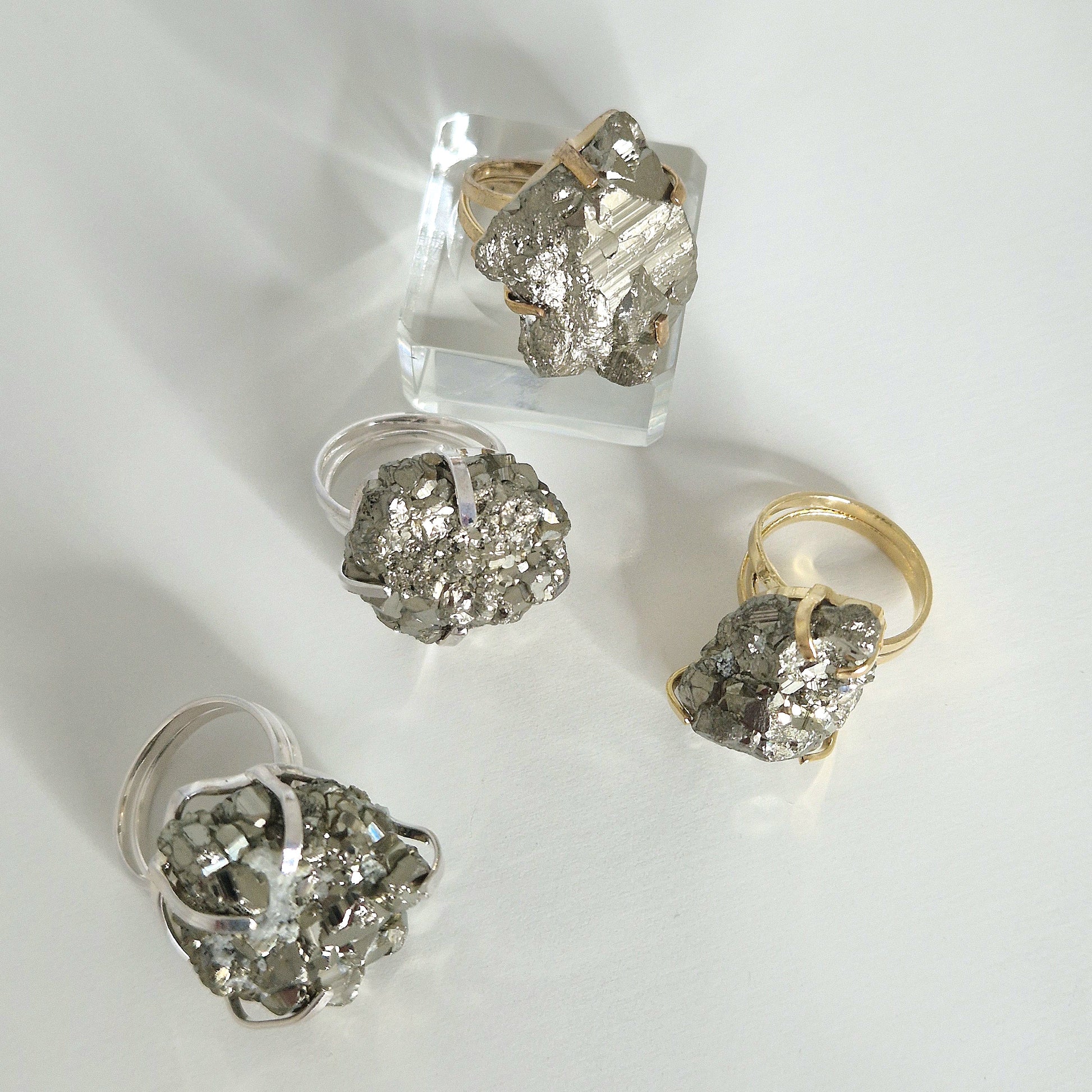 The Pyrite ring is a powerful and stylish piece of jewelry that sparkles with the golden sheen of this unique crystal. Pyrite is known as a stone of protection and manifestation, amplifying your energy and helping you approach life with confidence and decisiveness.