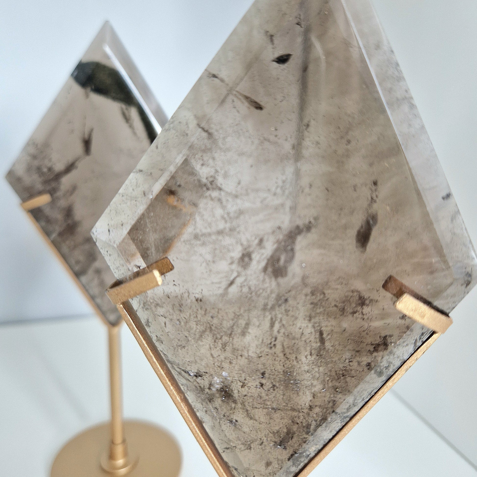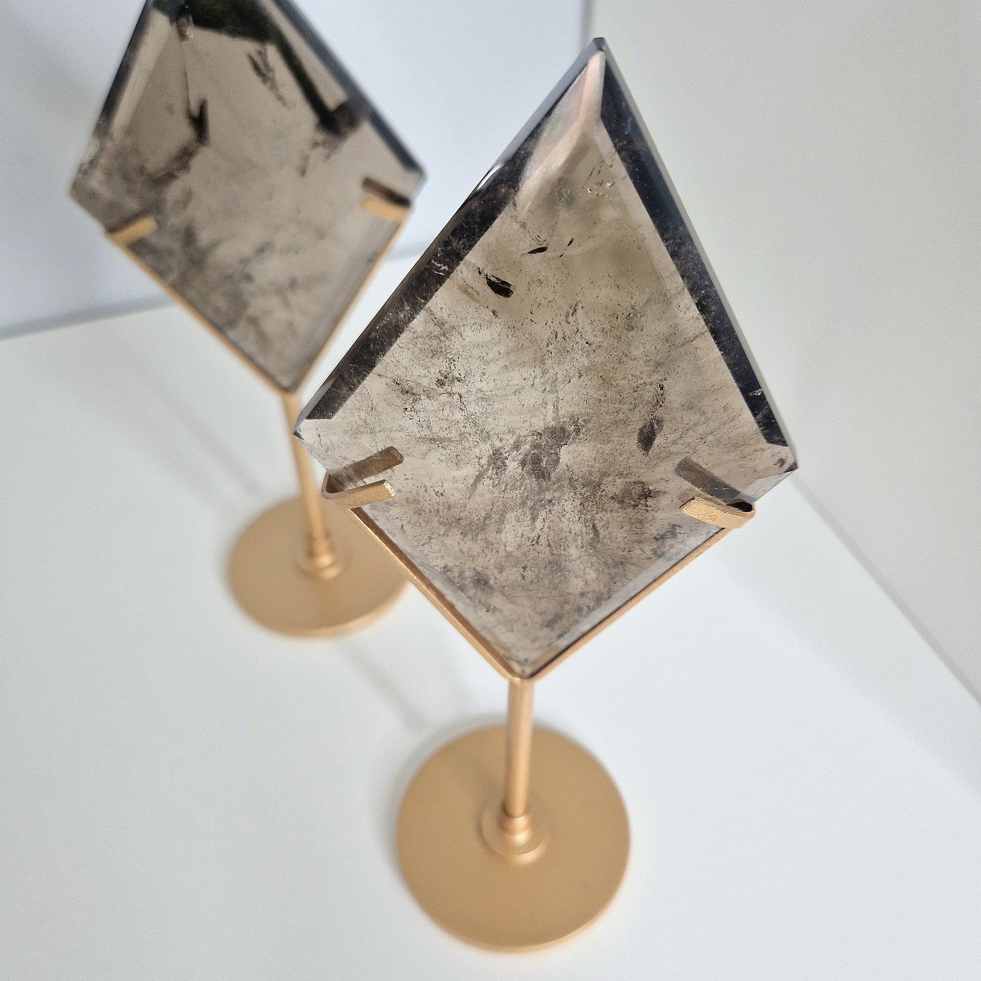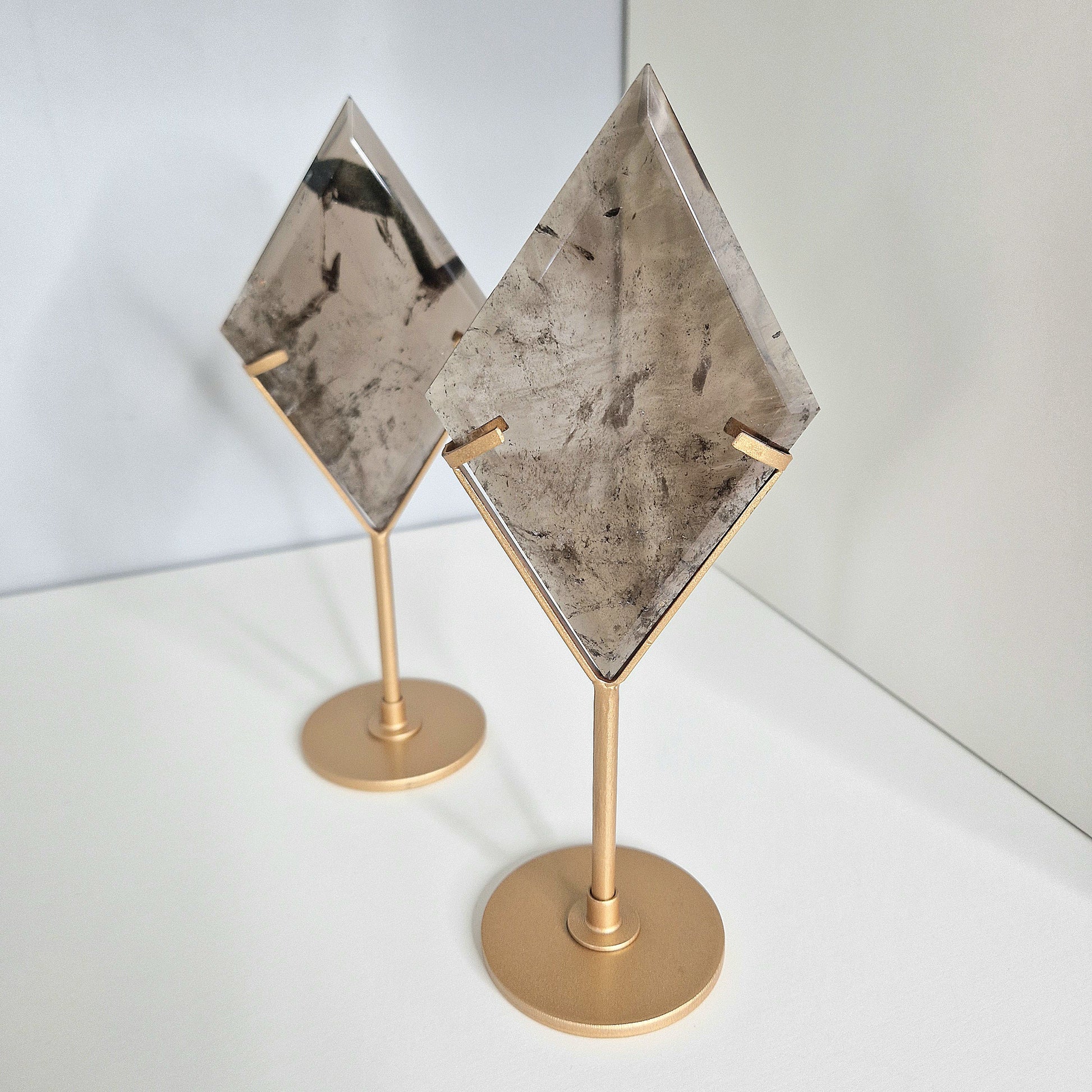 The Smoky Quartz Diamond on a holder is a stylish and powerful crystal known for its grounding and protective energy. The diamond shape enhances the focus and direction of the energy, while the holder makes this piece an elegant eye-catcher.